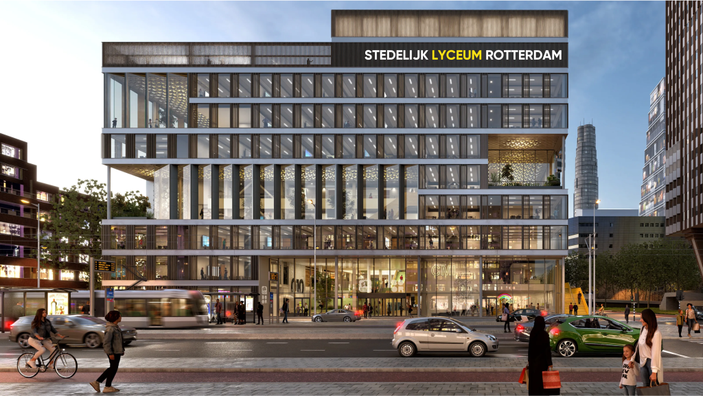 In juni 2024 begon de bouw van het nieuwste schoolgebouw van Rotterdam. Het hoogste punt bereikten we begin dit jaar. Nu werken we toe naar de opening van de modernste en de duurzaamste school van Rotterdam. In 2027 verwelkomt het Stedelijk Lyceum Rotterdam de eerste leerlingen!